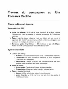 Travaux synthétiques du compagnon au Rite Écossais Rectifié